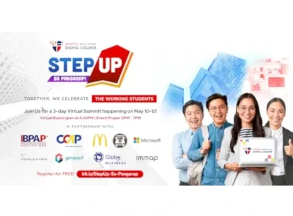 MANILA, Philippines – Mapúa Malayan Digital College (MMDC), the Philippines’ premier digital-first college, together with partners IT and Business Process Association of the Philippines (IBPAP), Contact Center Association of the Philippines (CCAP), McDonald’s, Concentrix, Genpact, Globe Business, WhenInManila.com, Microsoft and Internet and Mobile Marketing Association of the Philippines (IMMAP), brings you Step Up Sa Pangarap, a movement that celebrates and encourages working students to step up in their careers, lives, and finances. All non-graduate employees and working students in the country are invited to join the 3-day virtual summit from May 10-12.